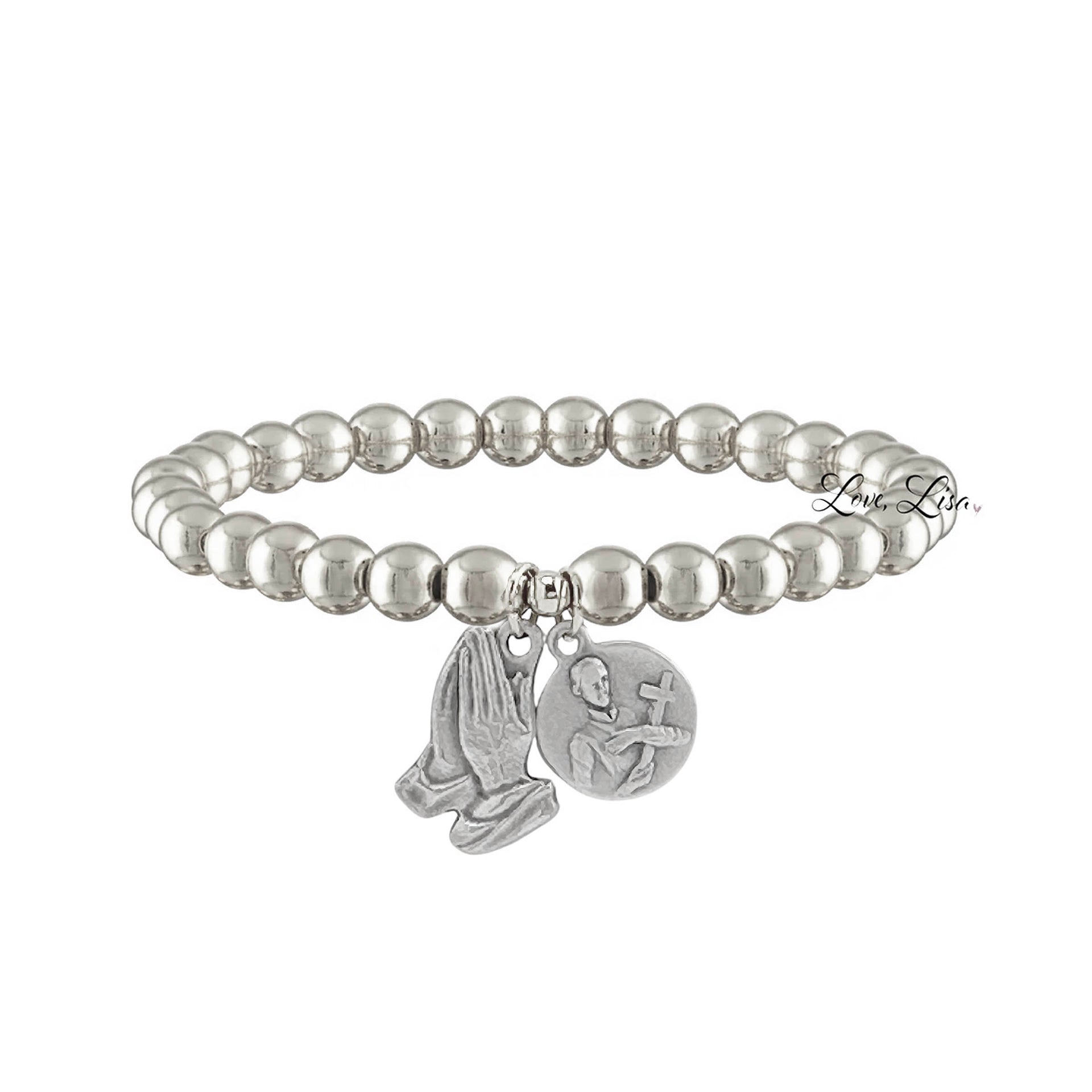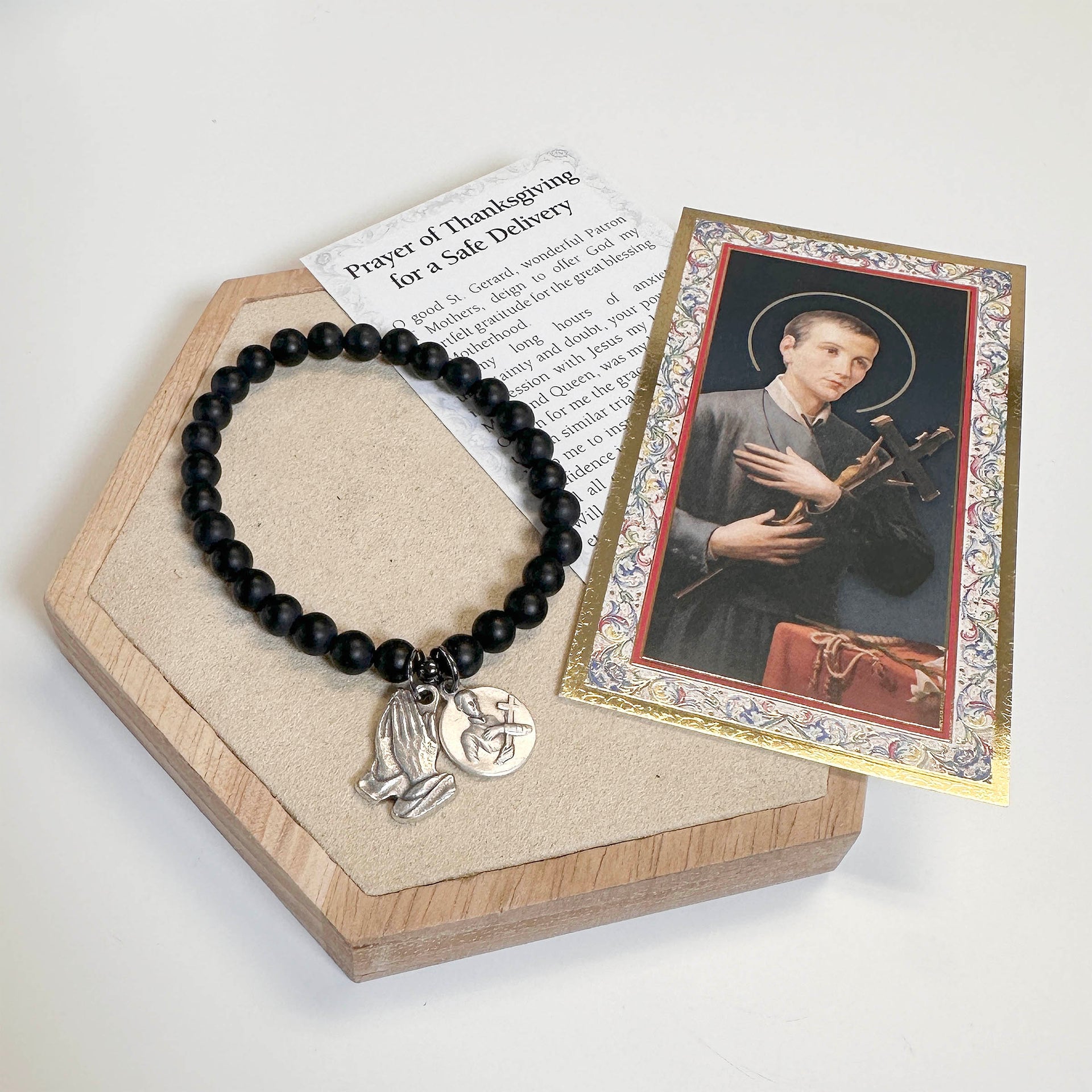 The Prayer for a Safe Delivery Bracelet honors St. Gerard, the beloved patron saint of expectant mothers. Designed with stretch beading for comfort, this bracelet carries two meaningful charms: a pair of praying hands and a St. Gerard medal. Each bracelet comes with a prayer card of thanksgiving for a safe delivery, offering encouragement and strength to mothers everywhere.