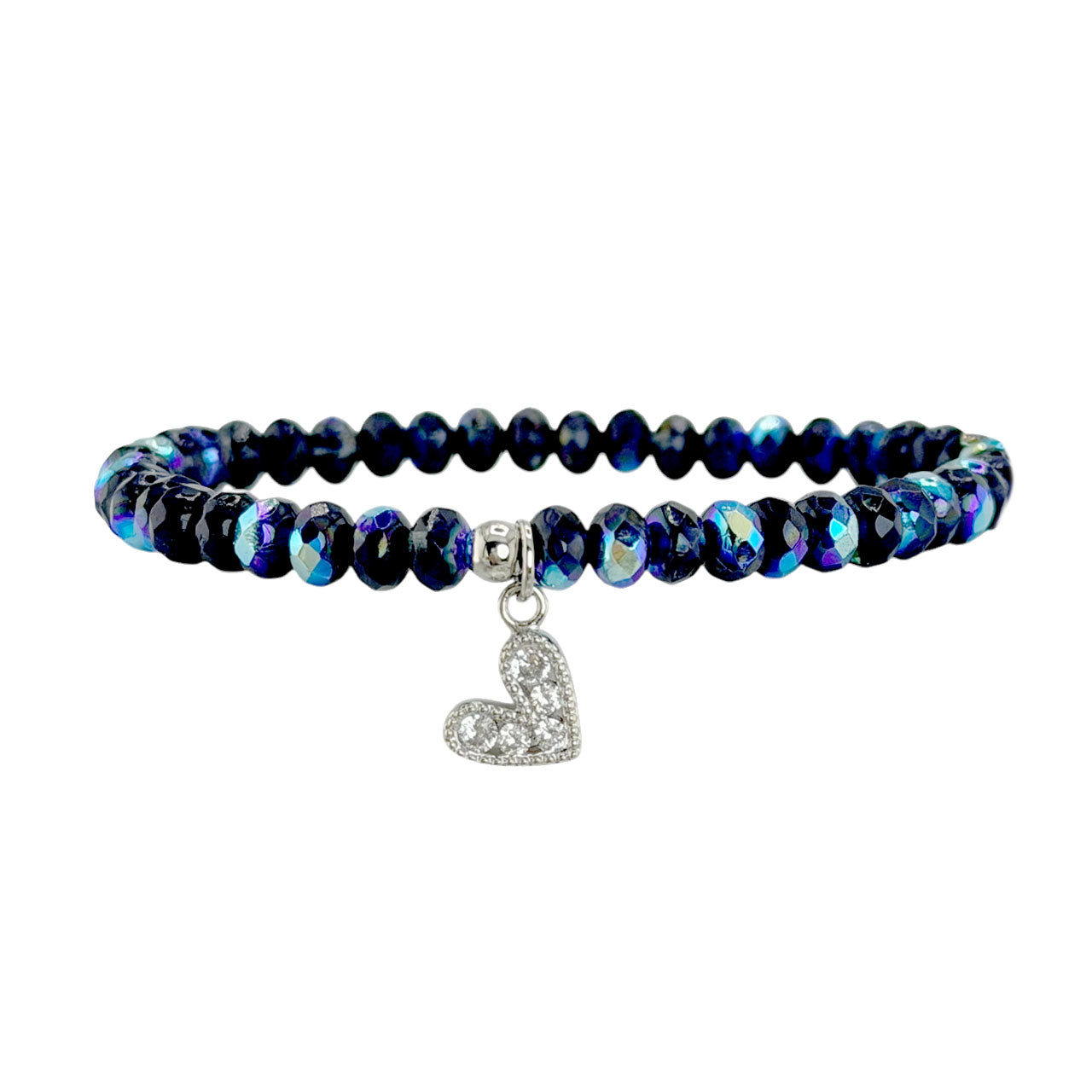 Add a vibrant touch to your style with the Harper's Radiance Heart Charm Bracelet Set. This dazzling collection features intricately faceted crystal beads in a spectrum of stunning colors, each complemented by a playful enamel heart charm. Designed with a comfortable elastic band, these bracelets are perfect for stacking or wearing solo for a pop of sparkle.