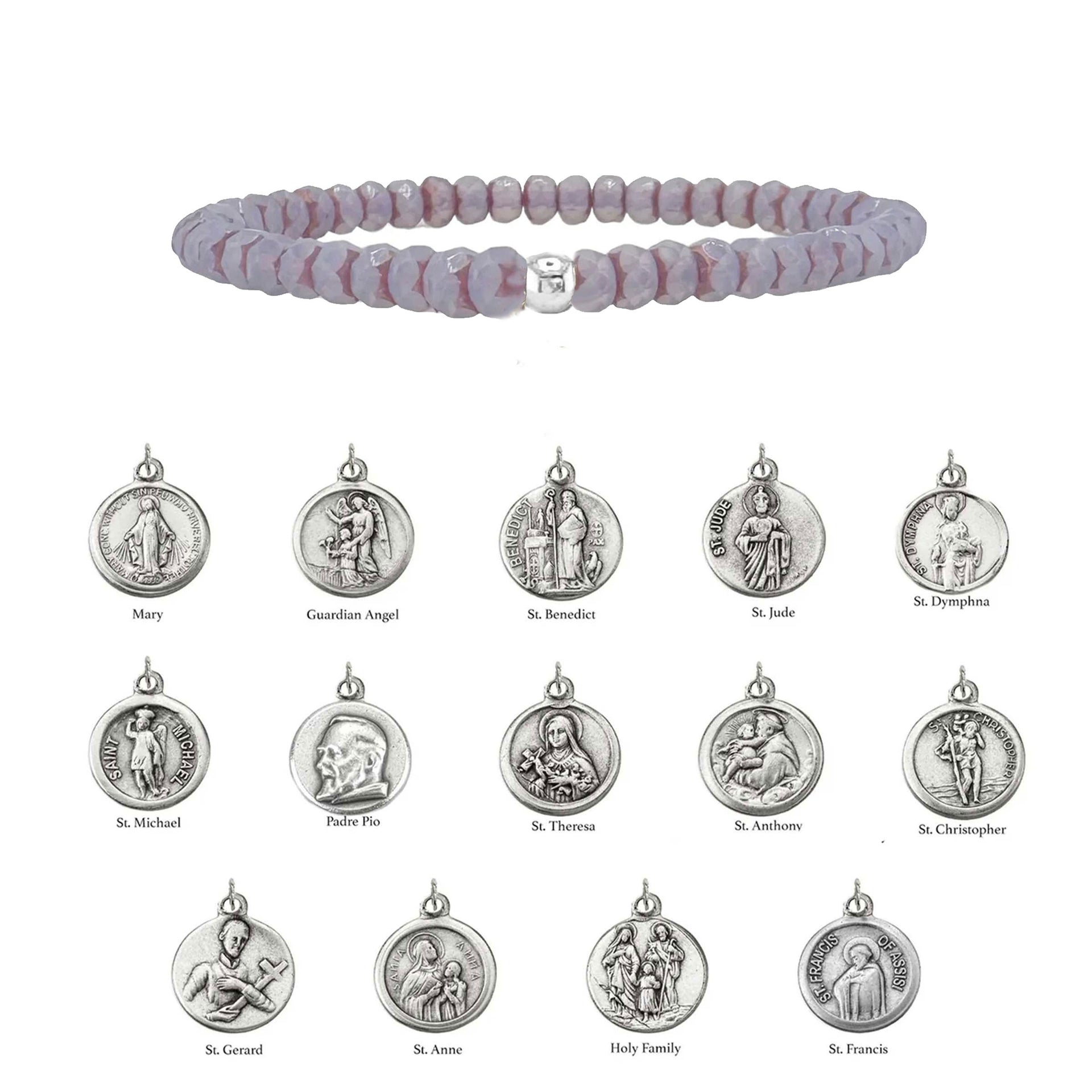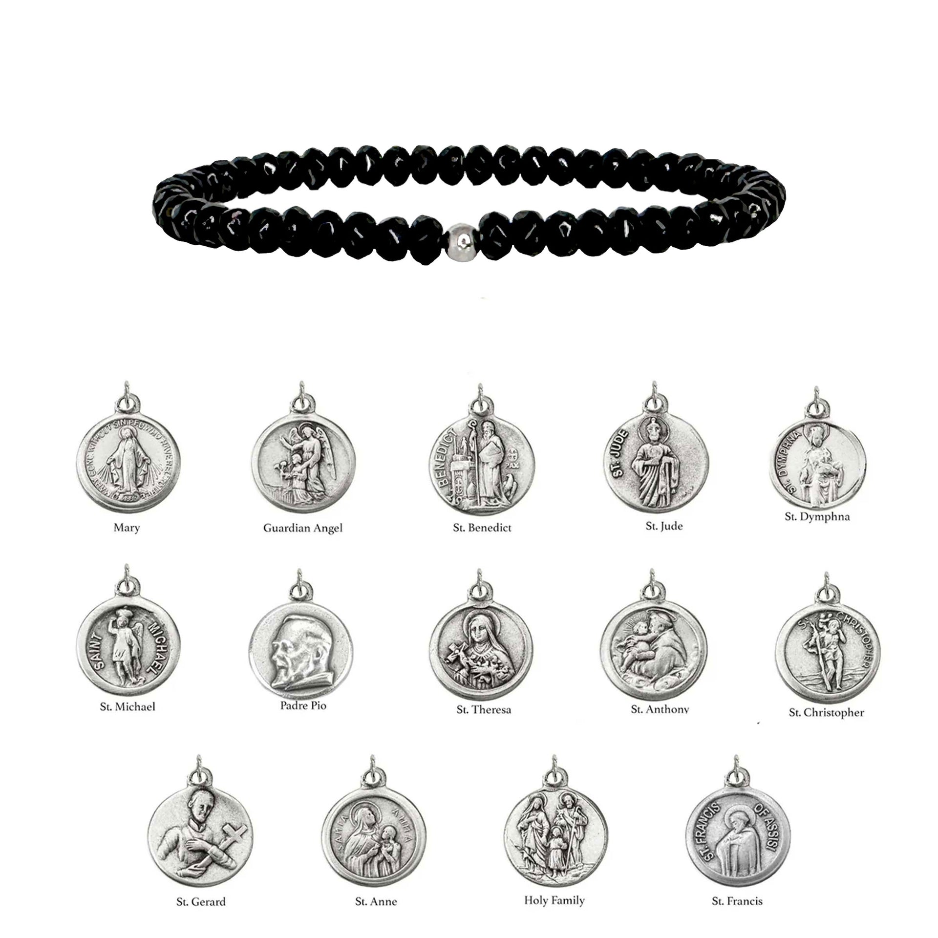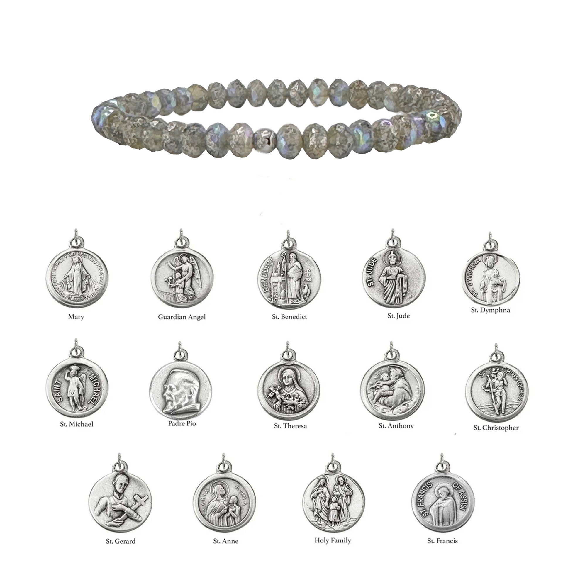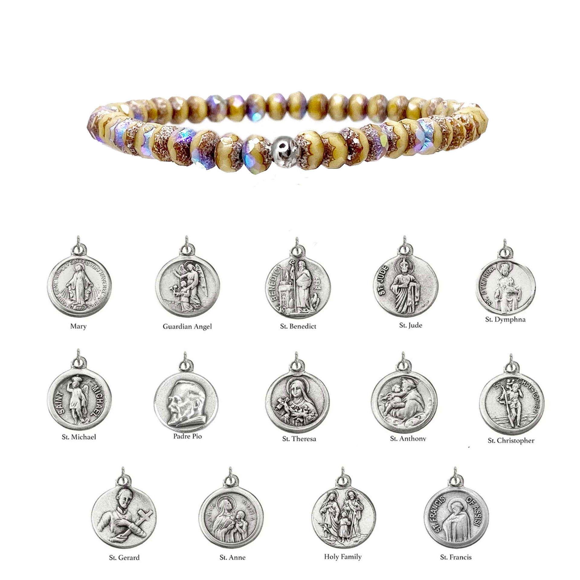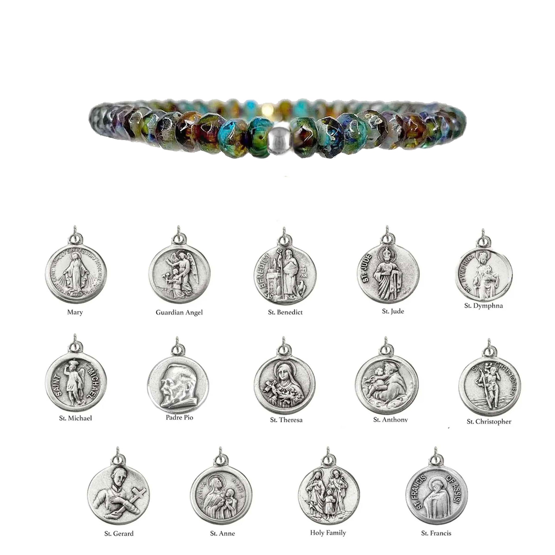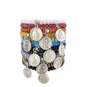 Add meaning and brilliance to your stack with these Crystal Saint Medal Beaded Bracelets—exclusive to the Love, Lisa collection. Each bracelet features radiant crystal beads in rich, eye-catching colors paired with a beautifully detailed round saint medal. To deepen the spiritual connection, every bracelet comes with a matching prayer card, making it a thoughtful gift or personal keepsake.