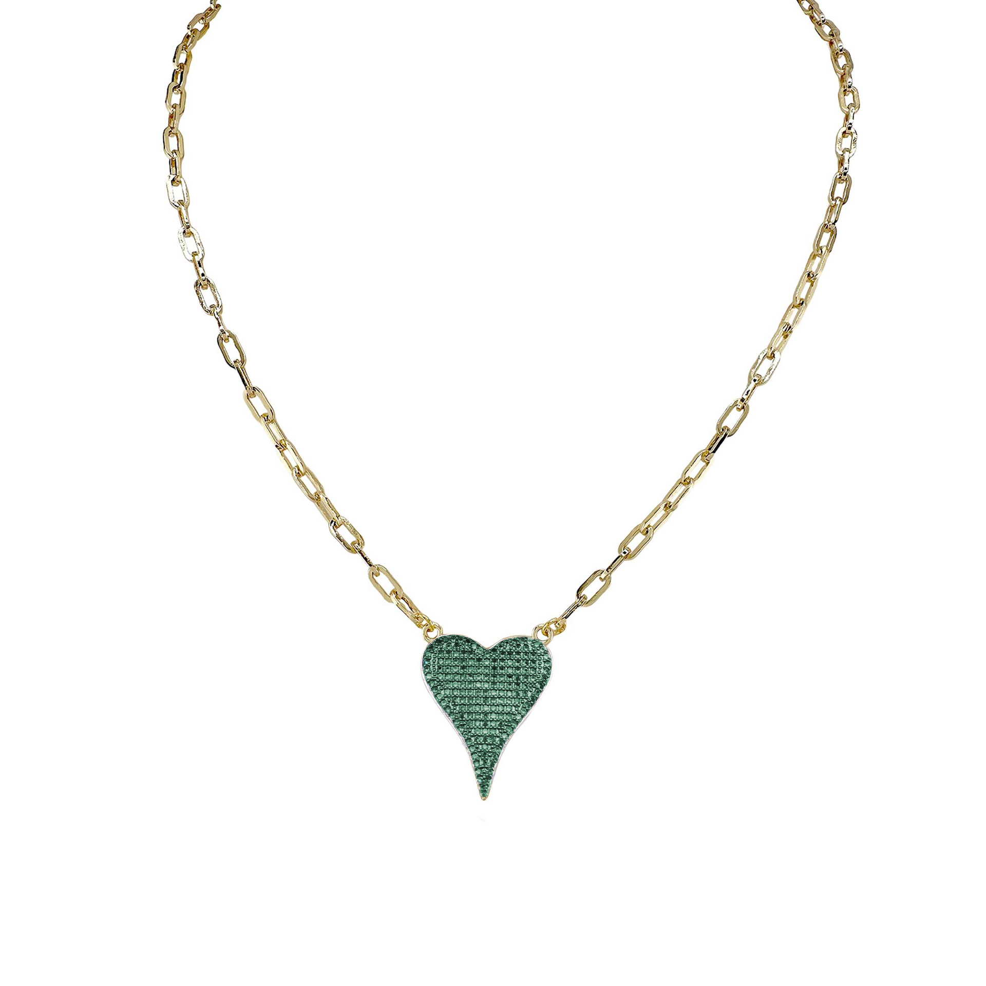 Dare to dazzle with the Aimee Paperclip Heart Necklace. Featuring a sleek paperclip chain paired with a radiant pavé heart pendant, this necklace strikes the perfect balance between elegance and edge. With options in 16" and 18" lengths, it’s a playful yet sophisticated statement piece for the modern fashionista. Available in an array of striking colors, it’s the ultimate accessory for expressing your unique style—day or night.