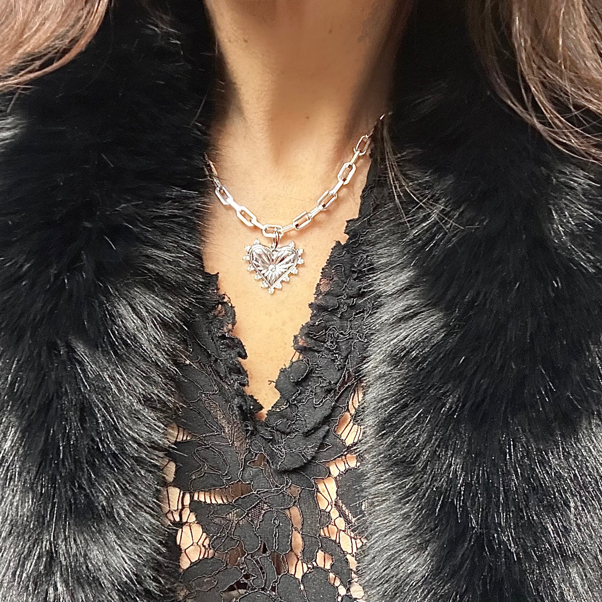 Suspended from a luxe paperclip chain, the heart pendant brings just the right balance of edge and elegance. Whether worn solo as a standout piece or layered with favorite chains, this necklace delivers timeless glamour with a modern feel.