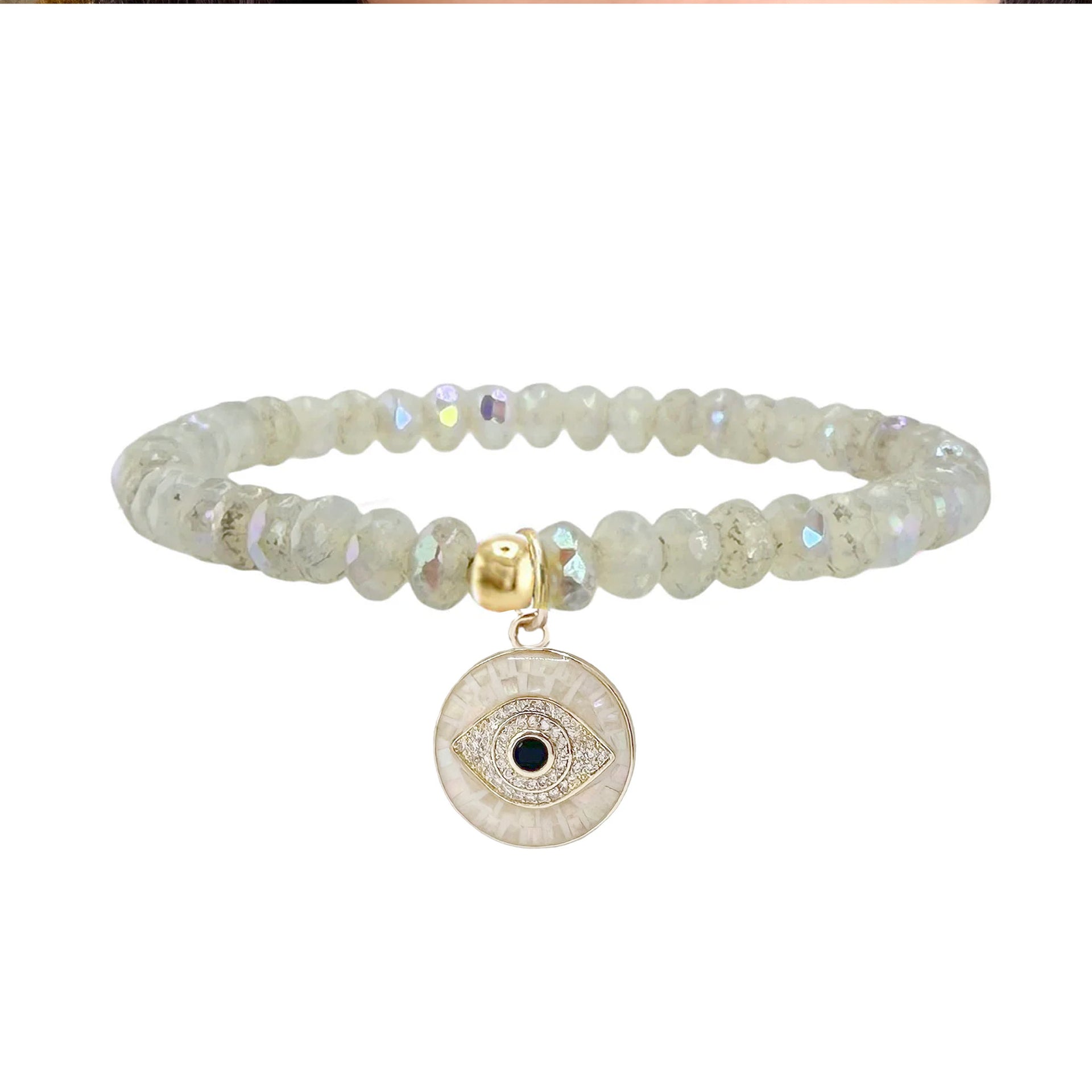 Add sparkle and protection to your stack with the Harper Czech Crystal Mosaic Evil Eye Charm Bracelet. Crafted with faceted Czech crystal beads that catch the light from every angle, this bracelet features a stunning mosaic evil eye charm symbolizing luck and protection.