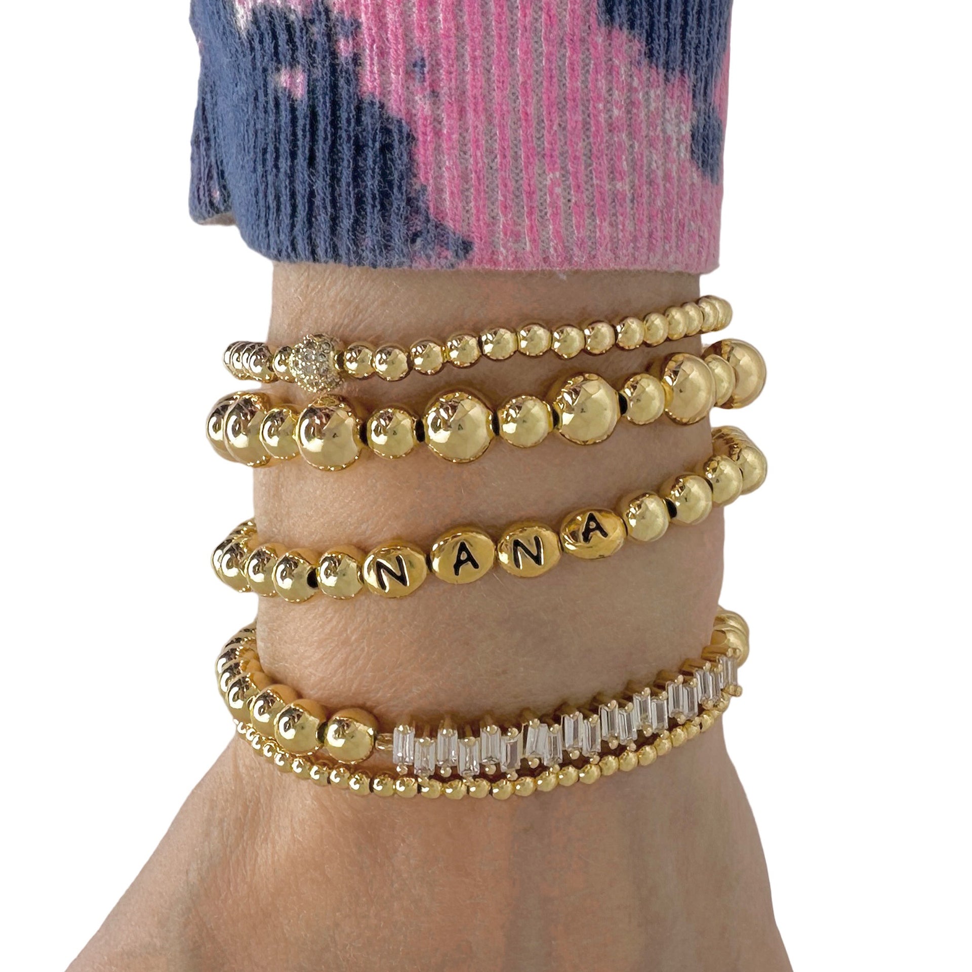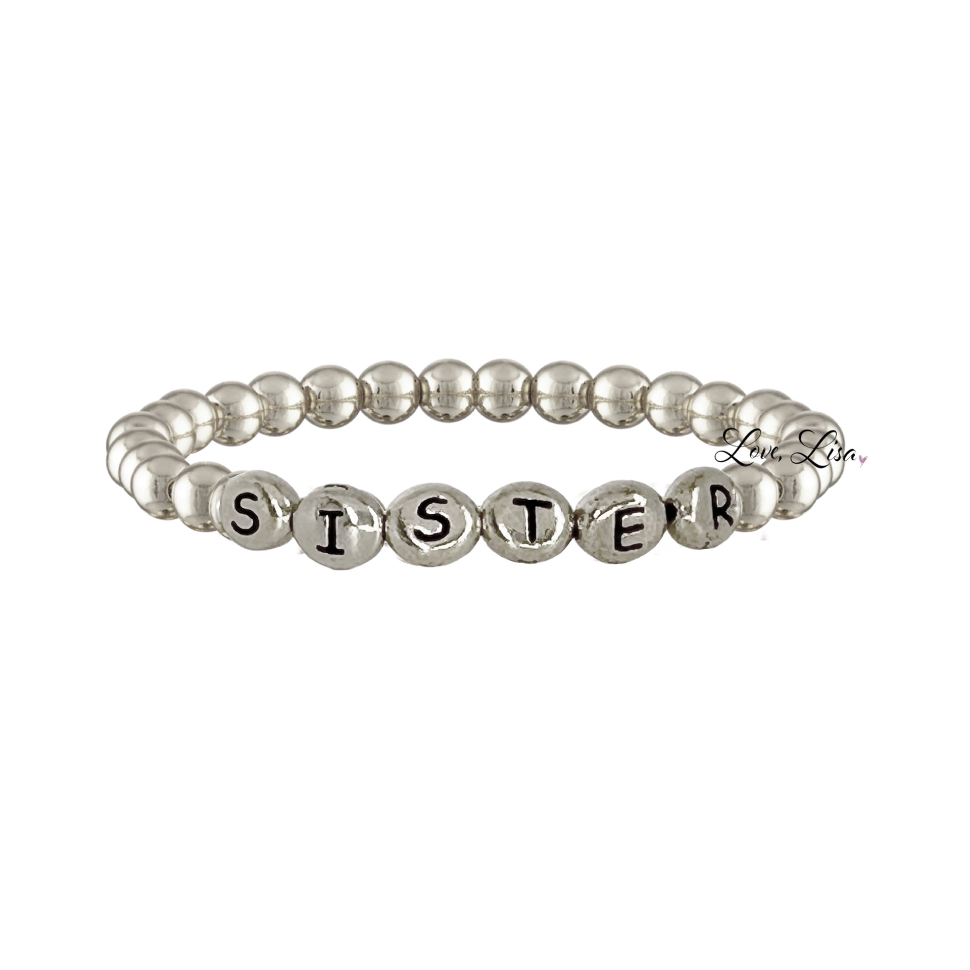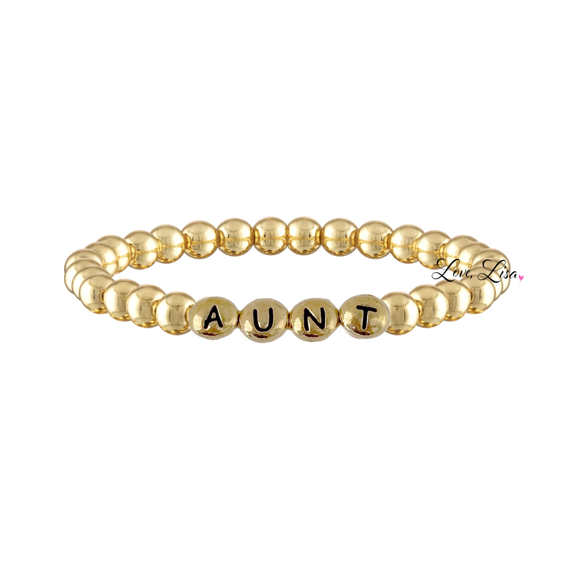 Celebrate family with the Carrie Family Bracelet — a sweet, meaningful reminder of love and connection. Each bracelet features 6mm gold or silver beads and letter beads that spell out your special family role — Mimi, Mom-Mom, Aunt, Sister, or Nana.