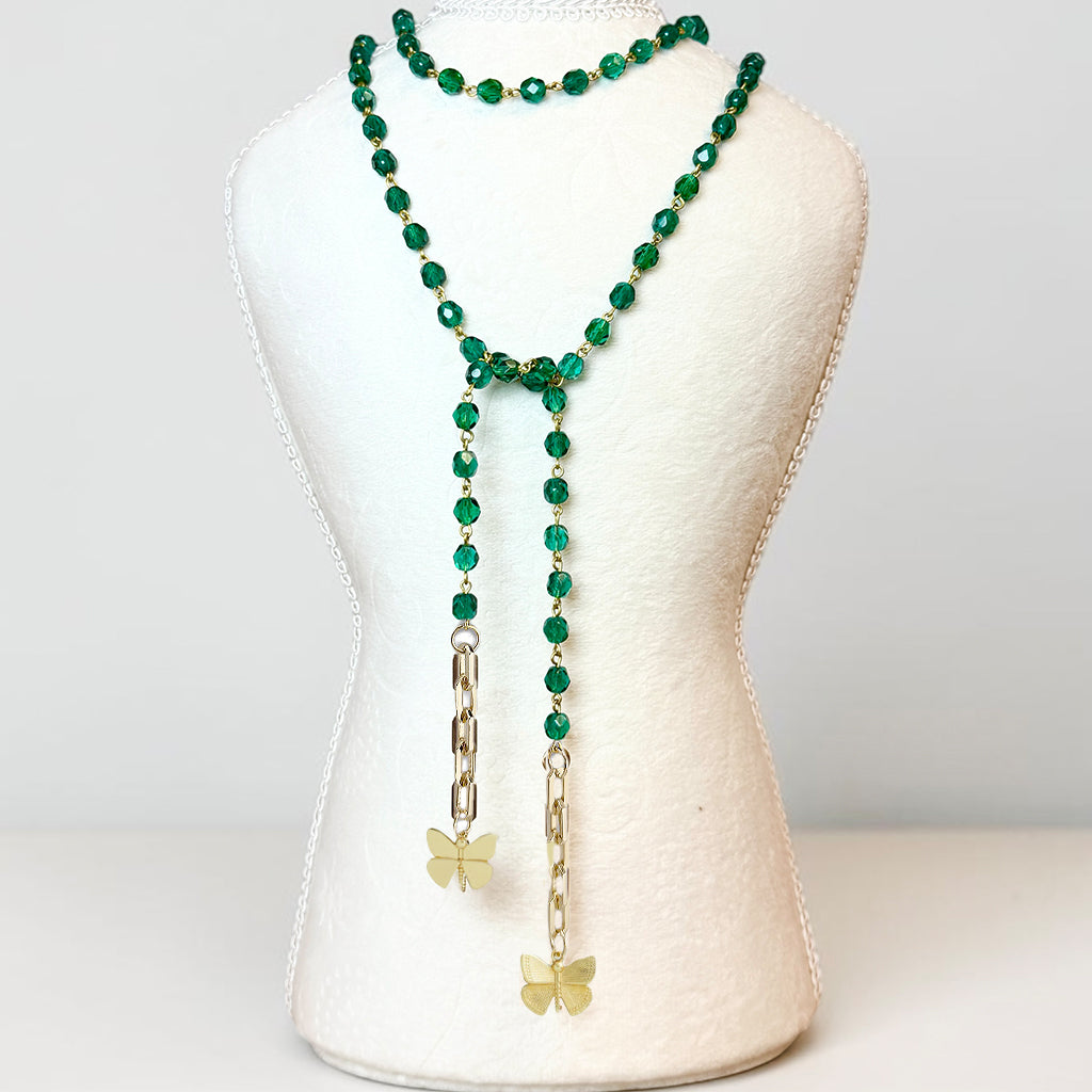 The Bailey Butterfly Wrap Necklace is the kind of piece that instantly pulls your entire look together the second you put it on. Designed at 40 inches, it wraps effortlessly around your neck to create a layered, styled look without needing multiple necklaces.