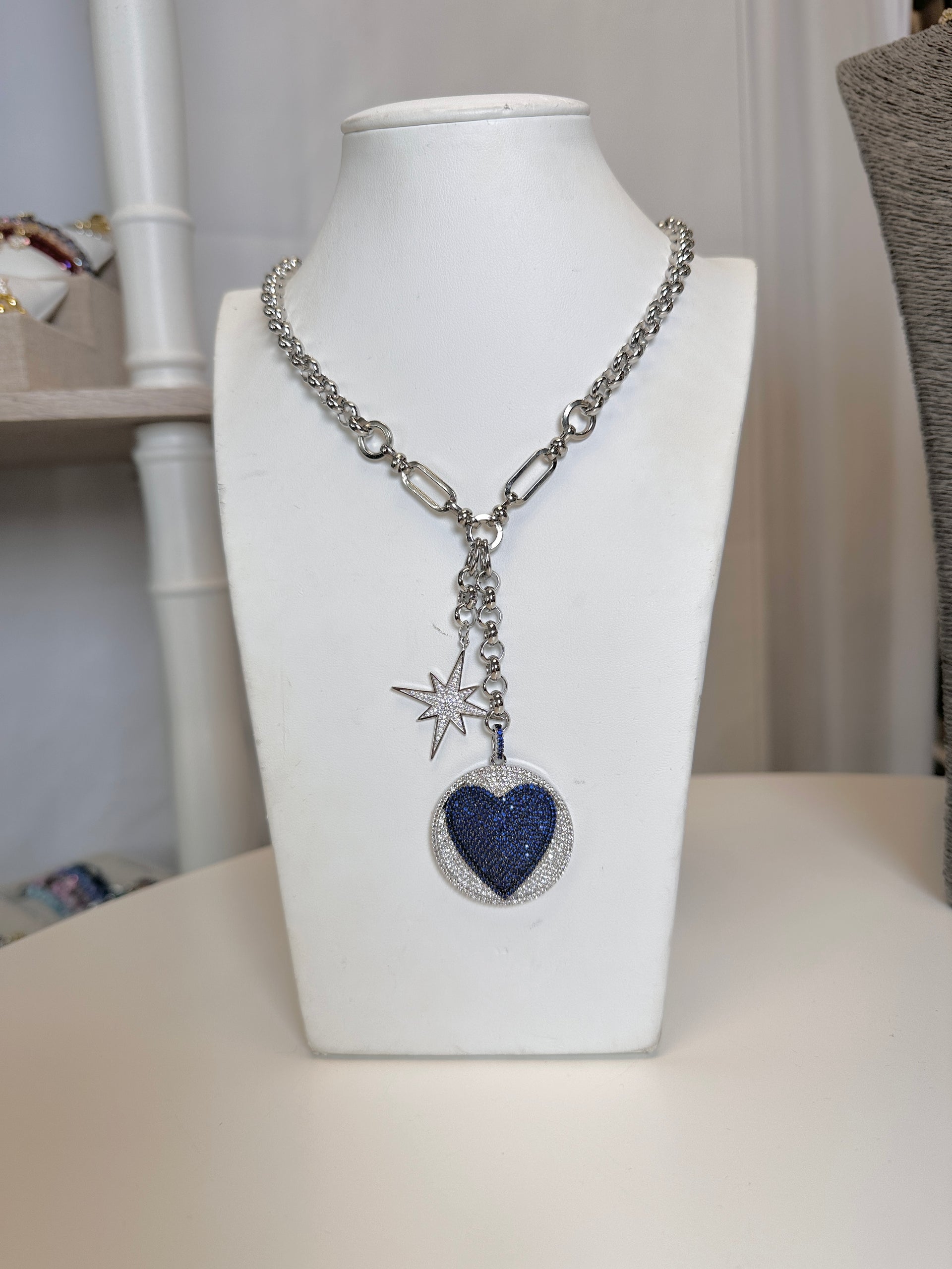 Molly Lariat Necklace with Heart Medallion and Starburst Charm