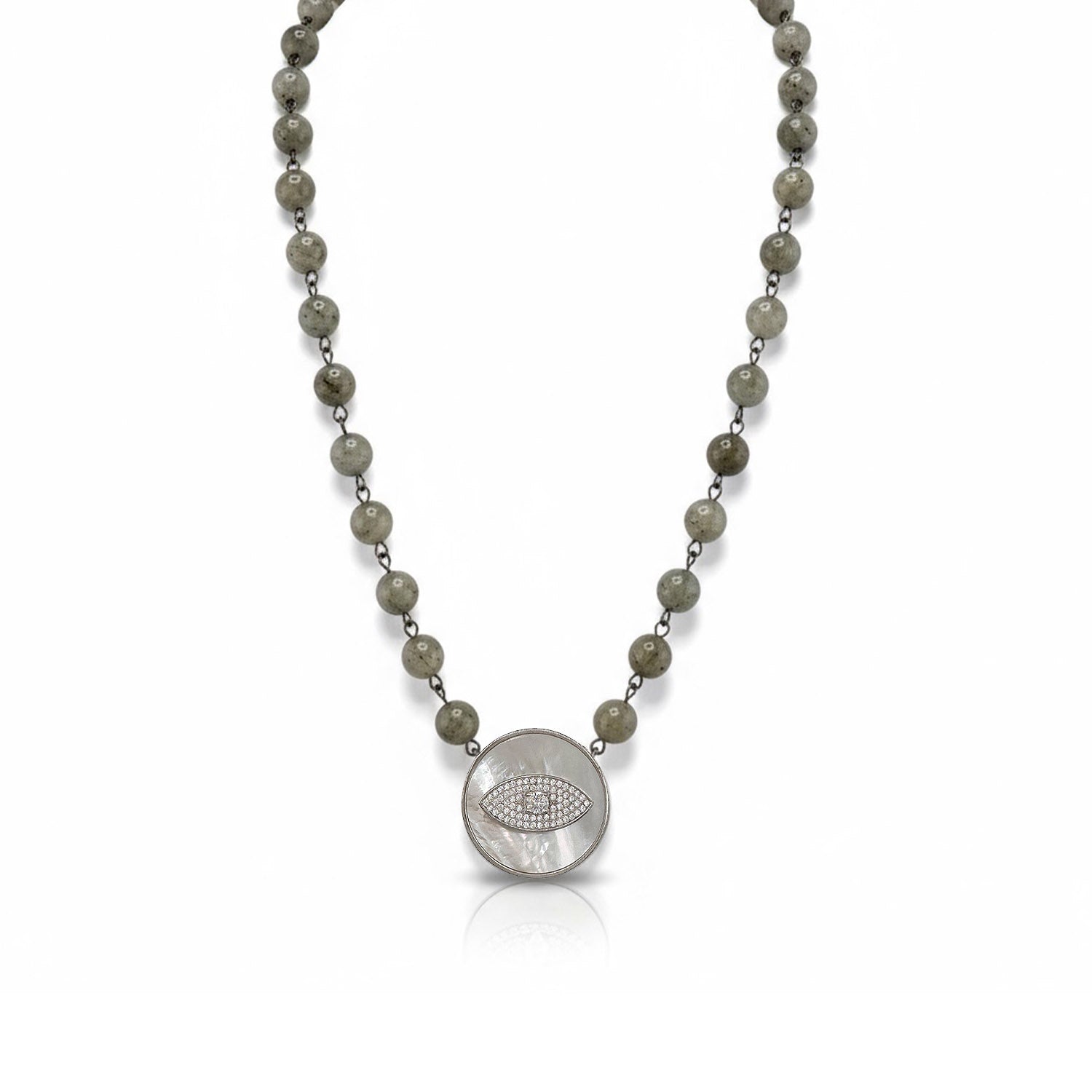Labradorite Evil Eye Mother of Pearl Necklace One of a Kind