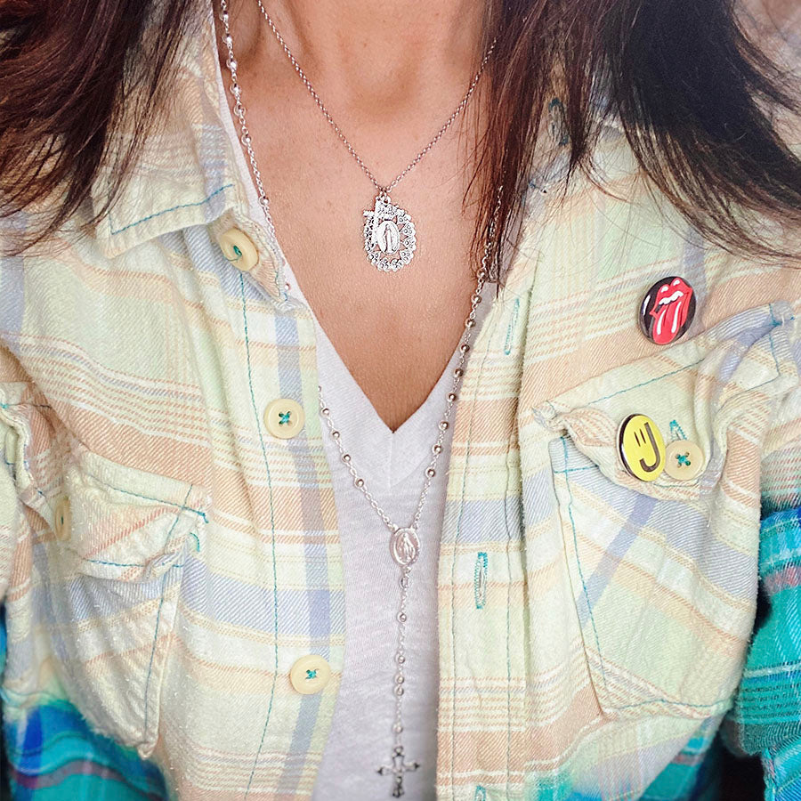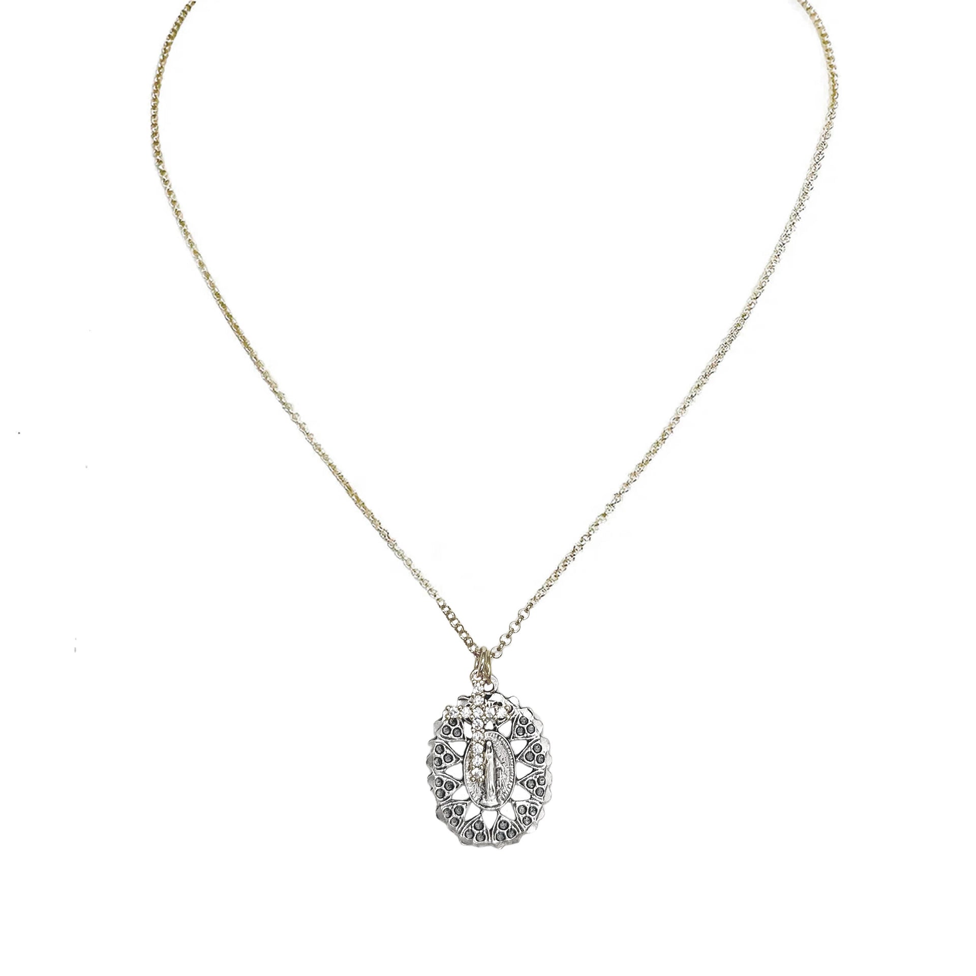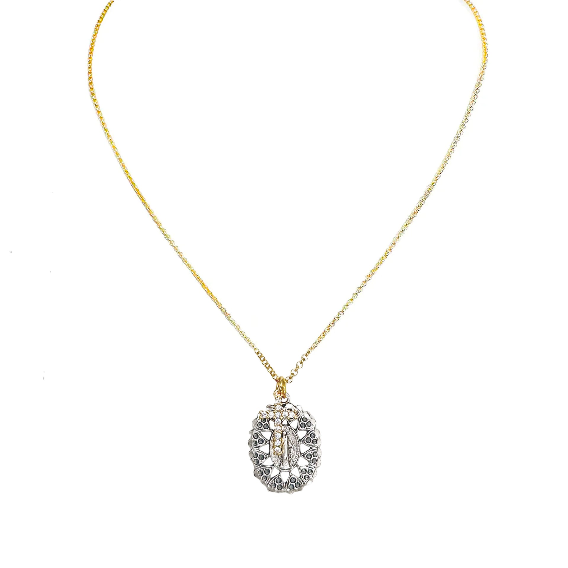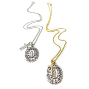 The Blessed Mother and Cross Necklace is a timeless expression of faith and devotion. Designed with a radiant gold or silver chain, this necklace features two meaningful pendants: the Miraculous Medal and a crystal-studded cross. The medal serves as a reminder of grace and protection, while the sparkling cross symbolizes strength and belief. Available in 16-inch or 18-inch lengths, it’s a versatile piece to wear every day or to gift as a symbol of peace and prayer.