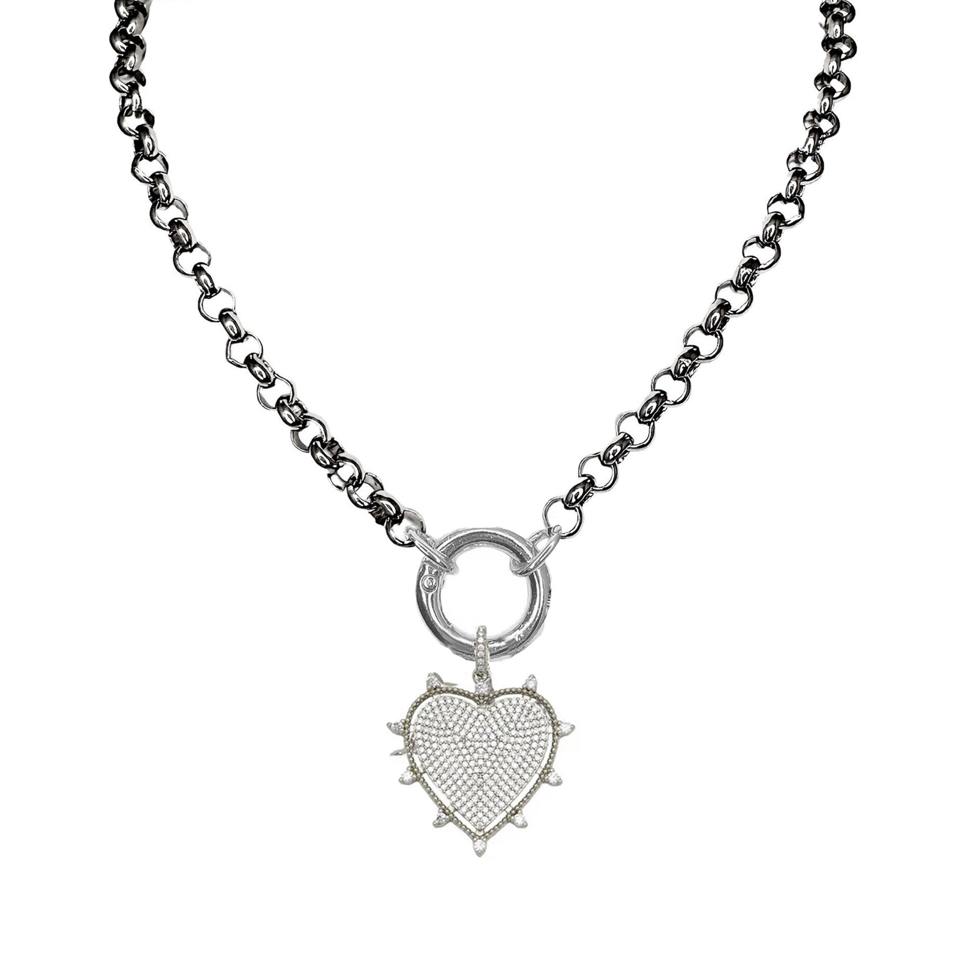 The stunning sparkling heart charm captures attention with its radiant design. The necklace features a sturdy 16-inch link chain, which showcases a beautifully crafted round holder at the bottom, ensuring that the charm hangs just right. For easy wear, a secure lobster clasp at the back allows for effortless closure, providing both style and functionality. This combination makes it a perfect gift or a delightful addition to any jewelry collection.