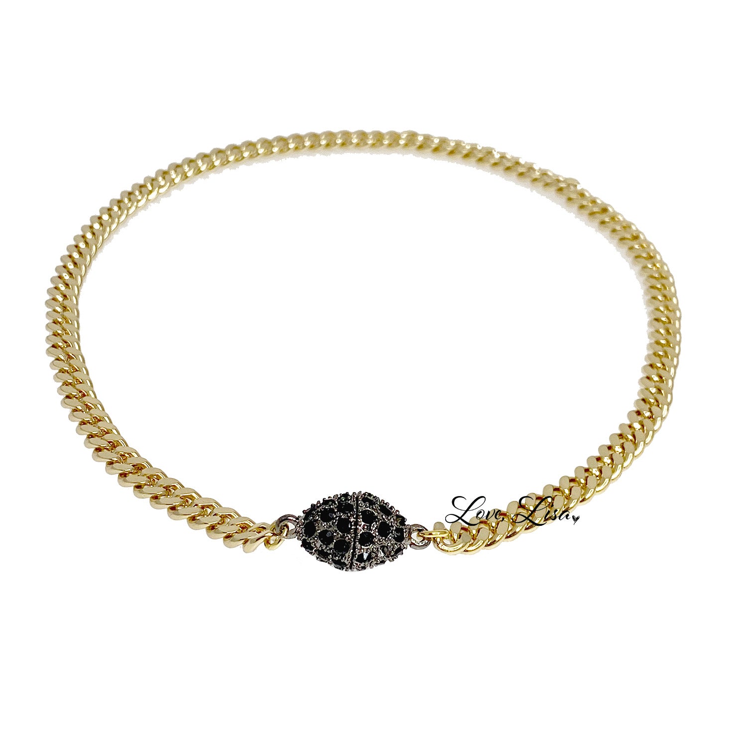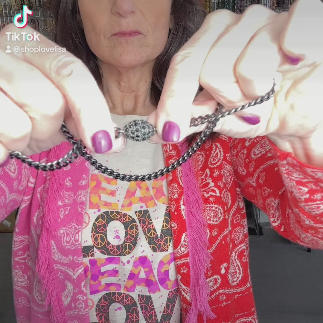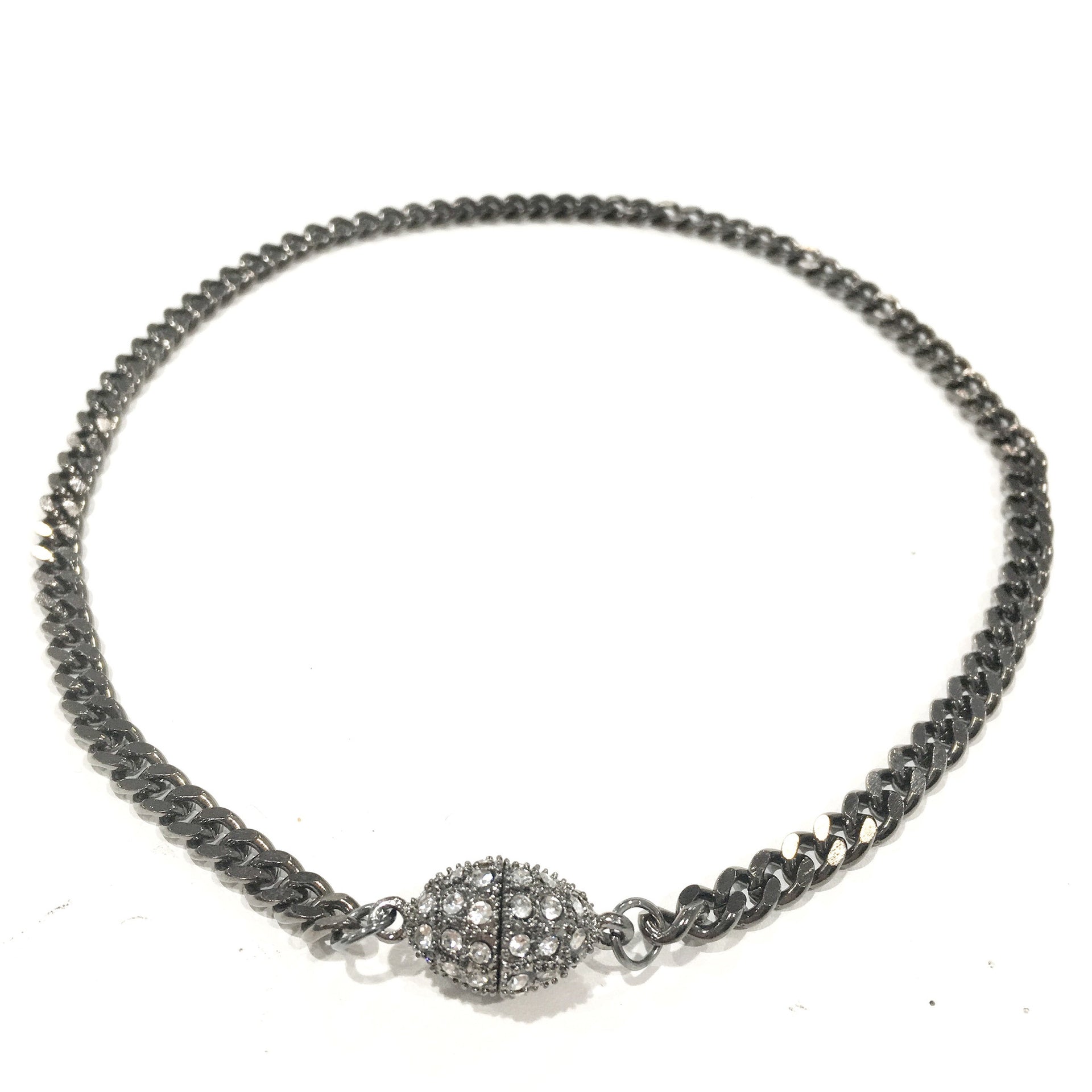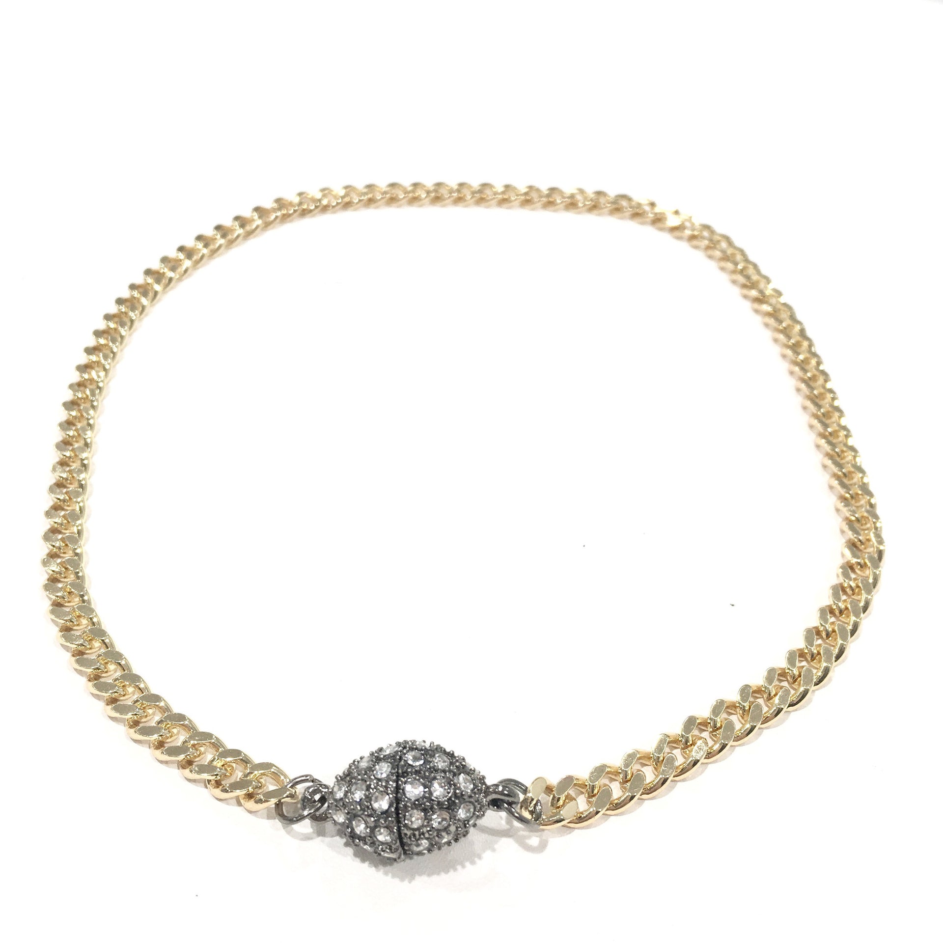 Lisa’s Favorite Thin Magnetic Choker is a top selling Love Lisa staple thanks to its sleek feel, eye catching shine, and easy magnetic closure. Available in gold, silver, and gunmetal chains with a sparkling pave clasp, this choker offers endless styling options. Wear gold with gunmetal for a chic mixed metal look or keep it simple with silver or gunmetal for clean everyday edge. Measuring 15.5 inches, it sits perfectly on the neck and instantly elevates any outfit.