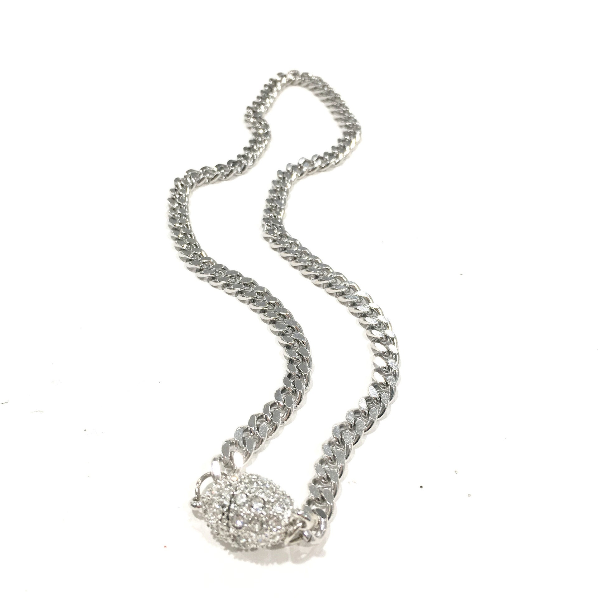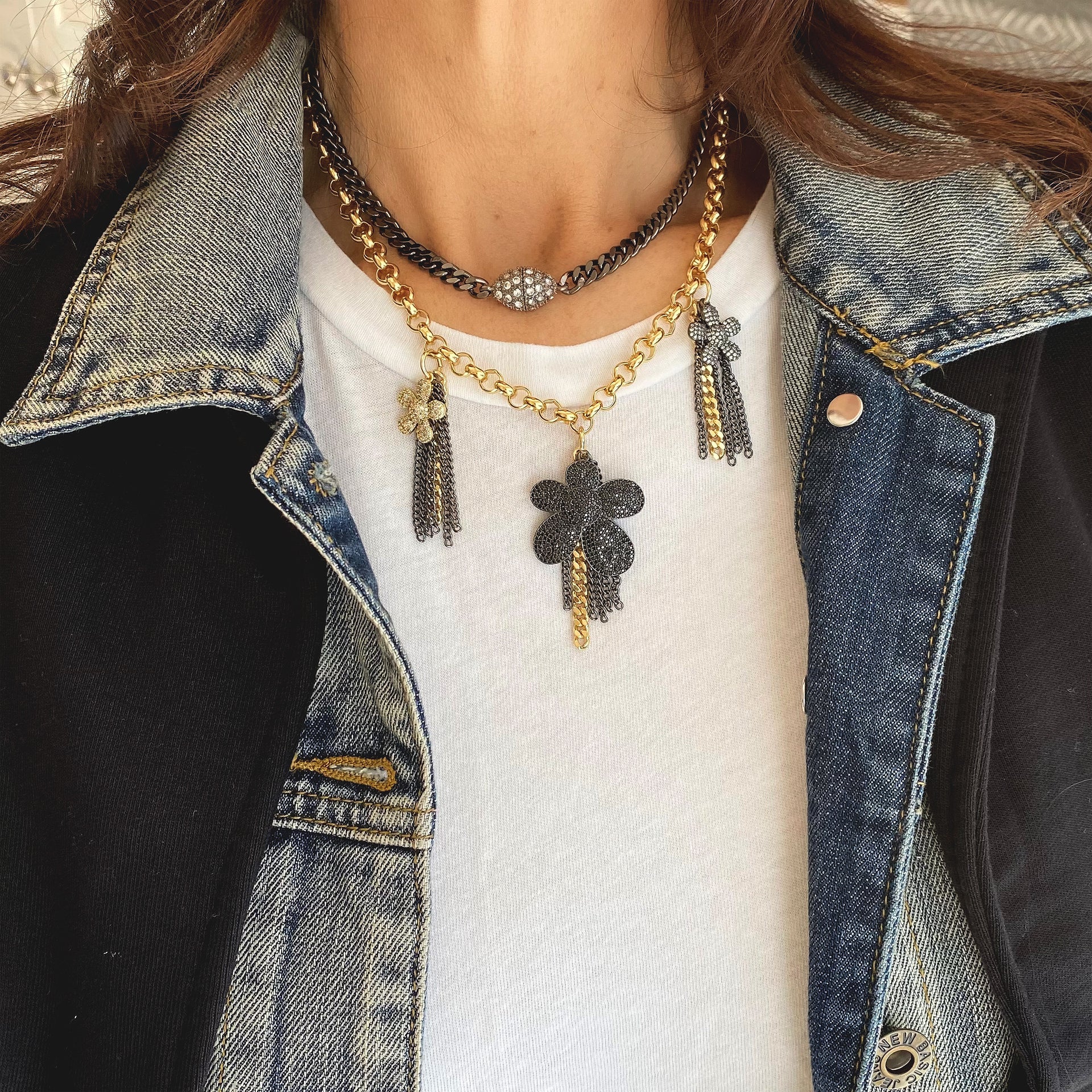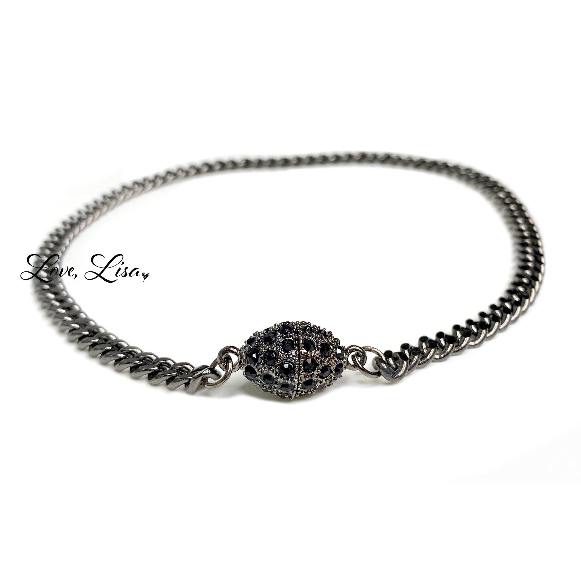 Lisa’s Favorite Thin Magnetic Choker is a top selling Love Lisa staple thanks to its sleek feel, eye catching shine, and easy magnetic closure. Available in gold, silver, and gunmetal chains with a sparkling pave clasp, this choker offers endless styling options. Wear gold with gunmetal for a chic mixed metal look or keep it simple with silver or gunmetal for clean everyday edge. Measuring 15.5 inches, it sits perfectly on the neck and instantly elevates any outfit.