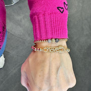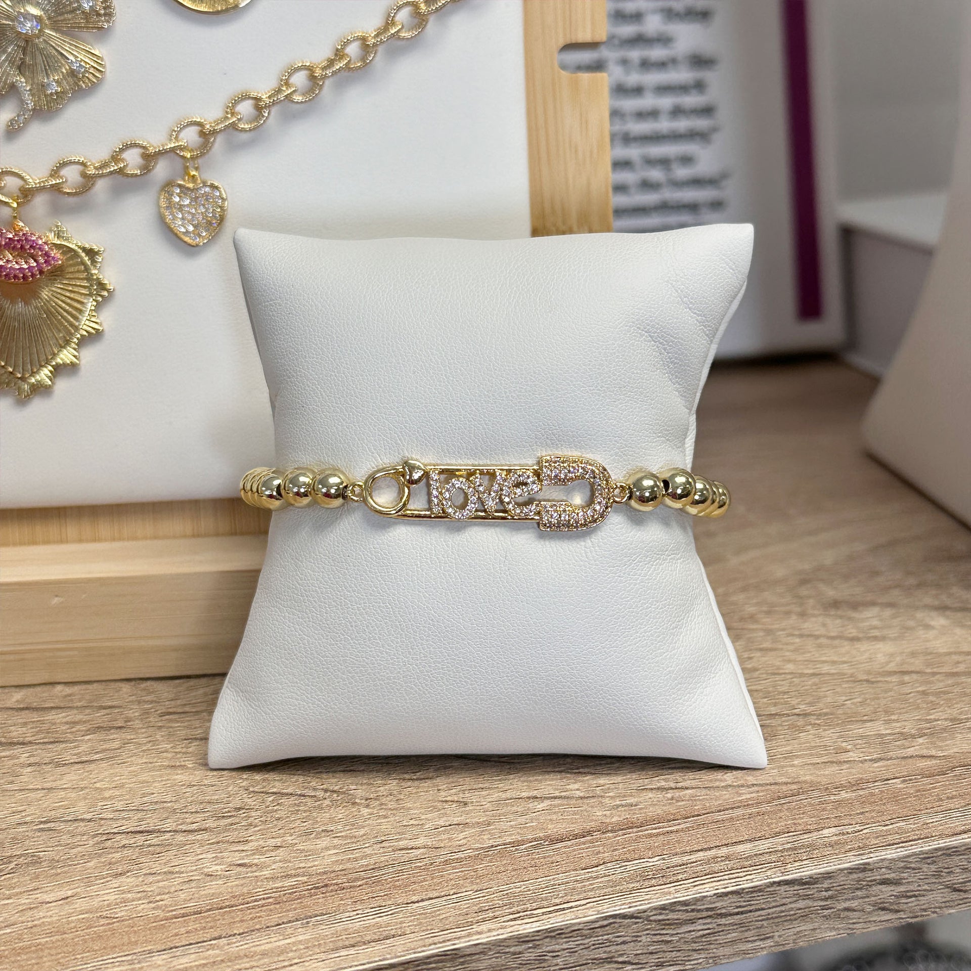 Hold on to what matters most with the Never Forget the Love Bracelet. This bold and beautiful design features a sparkling pavé safety pin charm spelling out “LOVE,” symbolizing strength, unity, and connection. Strung on durable elastic with 6mm polished beads, it's available in your choice of gold or silver. Whether you wear it solo or stacked, this bracelet is a daily reminder to keep love close.