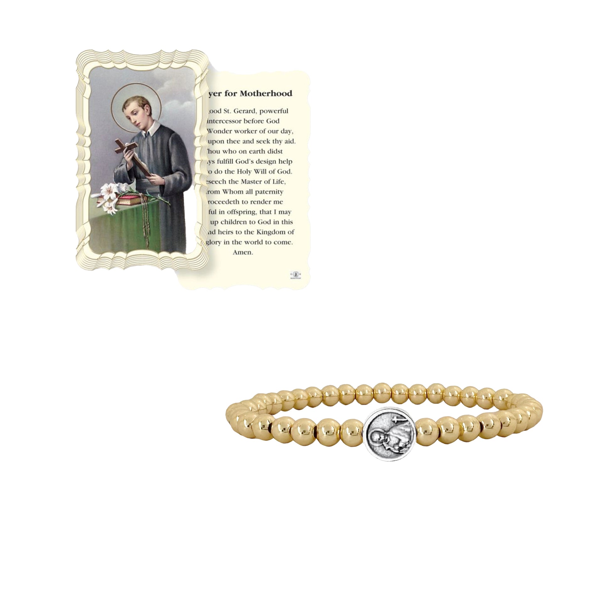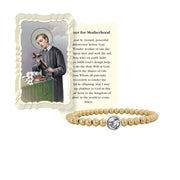 Experience the strength of Saint Gerard with our 5mm beaded bracelet, suitable for both males and females. As the patron saint of childbirth, children, expectant mothers, fertility, motherhood, the falsely accused, genuine confessions, lay brothers, the Pro-Life movement, and unborn babies. With sizes available for both genders, 6.85" for women and 7.5" for men, it serves as a subtle and fashionable reminder of St. Gerard's safeguarding. This product also comes with the featured prayer card.